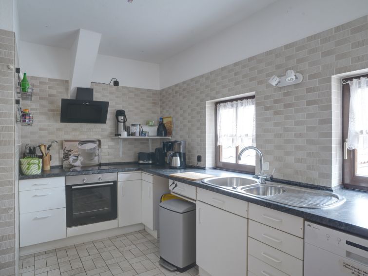 "Berghof Hohe ganzes Haus", huis 13-kamers 496 m2 op 3 verdiepingen. Ruim, doelmatig en gezellig ingericht: woonkamer met zwedenkachel. Woon-/eetkamer met Sat-TV (Flatscreen TV). 1 kamer met 1 2-pers bed. 1 kamer met 1 2-pers bed. Keuken (oven, afwasmachine, 4 keramische glas kookplaten, magnetron, elektrische koffiemachine). Bad/douche/bidet/WC, hydro massage bad. Bovenverdieping: woonkamer met Sat-TV (Flatscreen TV). Woon-/eetkamer met open haard en CD-speler. 1 kamer met 1 2-pers bed (180 cm, lengte 200 cm). 1 kamer met 1 2-pers bed (180 cm, lengte 200 cm). 1 kamer met 1 2-pers bed (180 cm, lengte 200 cm). 1 kamer met 1 bed (80 cm, lengte 200 cm). Keuken (oven, afwasmachine, 4 keramische glas kookplaten, magnetron, elektrische koffiemachine). Douche/WC, bad/douche/bidet/WC, hydro massage bad. 2e Verdieping: open woon-/slaapkamer met gordijn met 1 2-pers divanbed (200 cm, lengte 200 cm), 1 2-pers bed, eettafel, Sat-TV en stereo-installatie. Open keuken (afwasmachine, 4 keramische glas kookplaten, broodrooster, waterkoker, magnetron, elektrische koffiemachine) met zwedenkachel, eettafel en bar. 2 douche/WC's. Zolderverdieping: (wenteltrap) open, met afgeschuinde daken, 1 kamer, hoogte van het plafond 160 cm met 2 bedden (90 cm, lengte 200 cm). Woon-/slaapkamer met afgeschuinde daken met 3 bedden, Kabel-TV en Flatscreen TV. Keuken (oven, afwasmachine, 3 keramische glas kookplaten, waterkoker, diepvriezer, grill, elektrische koffiemachine) met eettafel. Douche/WC. Elektrische verwarming. Parketvloeren. Ter beschikking: kinderbed, haardhout (extra). Internet (Internet (WiFi), gratis). Niet rokers woning. Maximaal 3 huisdieren/honden toegestaan. Rookmelders, brandblusser.