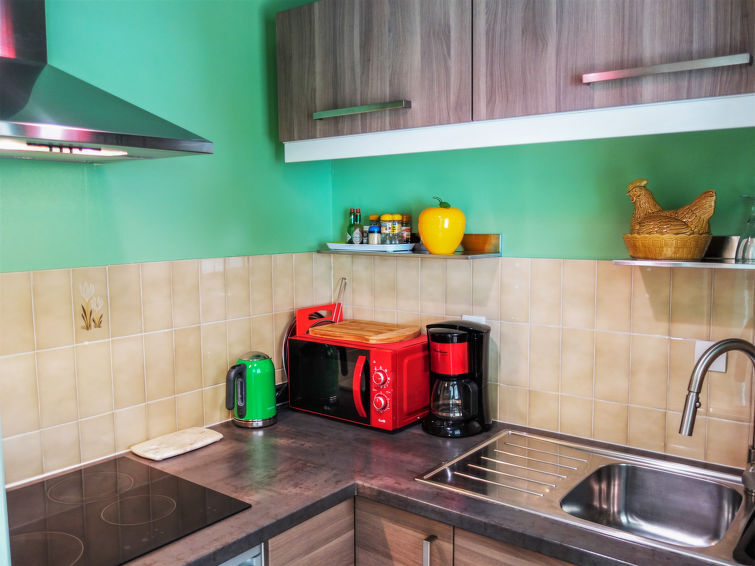 Appartement 1-kamer 30 m2, op de begane grond. Mooi ingericht: woon-/slaapkamer met 1 2-pers bed (1 x 140 cm, lengte 190 cm), TV (Flatscreen TV). Uitgang naar de zitplaats in de tuin. Keuken (4 keramische glas kookplaten, magnetron). Badkamer, aparte WC. Gas-verwarming. Terras 10 m2, ruime zithoek in de tuin 35 m2, op het zuiden gelegen en op het oosten gelegen. Terrasmeubelen, ligstoelen. Ter beschikking: wasmachine. Internet (Internet (WiFi), gratis). Parkeerplaats nr. 59. Rookmelders. 641250002694D