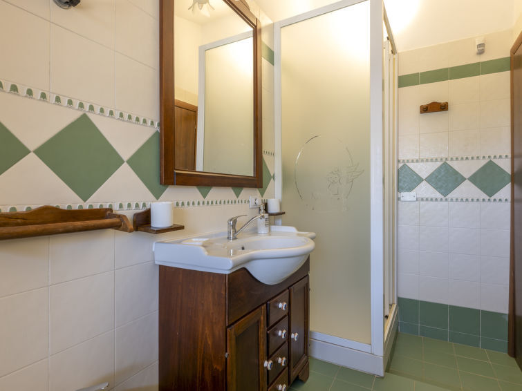 "Norbert", halfvrijstaand huis 4-kamers 75 m2 op 2 verdiepingen. Comfortabel en mooi ingericht: woonkamer met TV (Flatscreen TV), ventilator. Groot keuken (afwasmachine, 4 keramische glas kookplaten, broodrooster, waterkoker, magnetron, elektrische koffiemachine, combimagnetron) met eettafel, air-conditioning en heteluchtverwarming. Uitgang naar het terras. Douche/WC. Boiler (80 liter). Bovenverdieping: (wenteltrap) hal met air-conditioning en heteluchtverwarming. Uitgang naar het terras. 2 2-pers. kamers, elke kamer heeft air-conditioning en heteluchtverwarming. Uitgang naar het balkon. 1 kamer met afgeschuinde daken met gordijn hoogte van het plafond 140 - 220 cm met 2 bedden. Douche/bidet/WC. Verwarming, heteluchtverwarming, boiler (50 liter). Verwarming alleen beschikbaar van 01.12. tot 31.03, Verwarming niet in alle ruimtes. Balkon 8 m2, terras 13 m2, terras 18 m2. Terrasmeubelen, barbecue, ligstoelen (4). Zeer mooi uitzicht op zee. Ter beschikking: wasmachine, kluis, strijkijzer, klamboe, kinderstoel, kinderbed tot 2 jaar (extra), haardroger. Internet (Internet (WiFi), gratis). Parkeerplaats (2 Auto's). Rookmelders, brandblusser. IT089017C2F2EVGFHH
