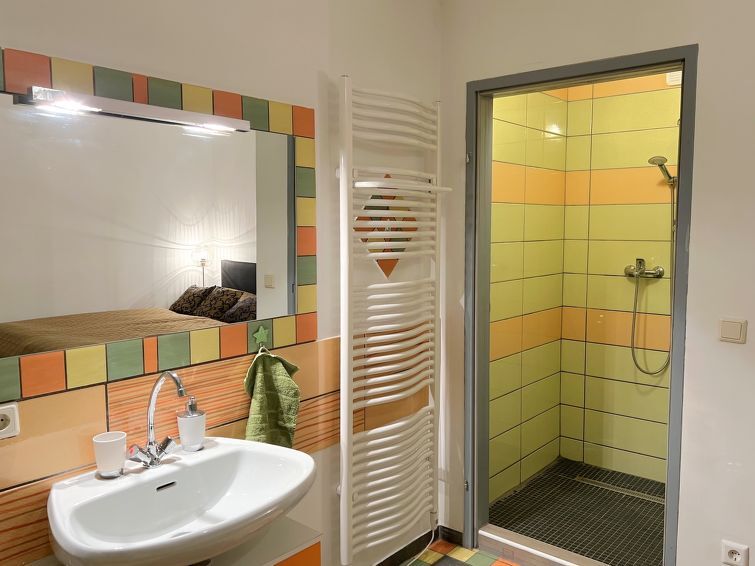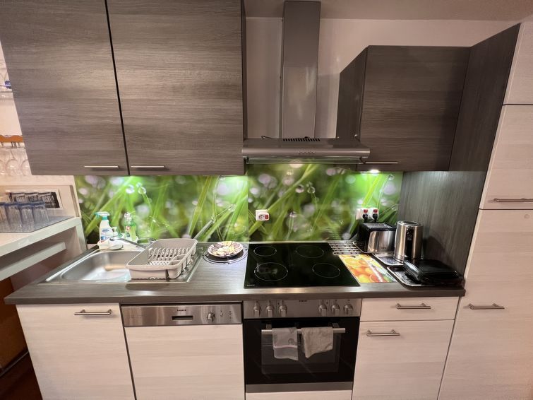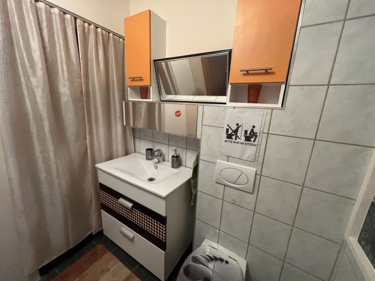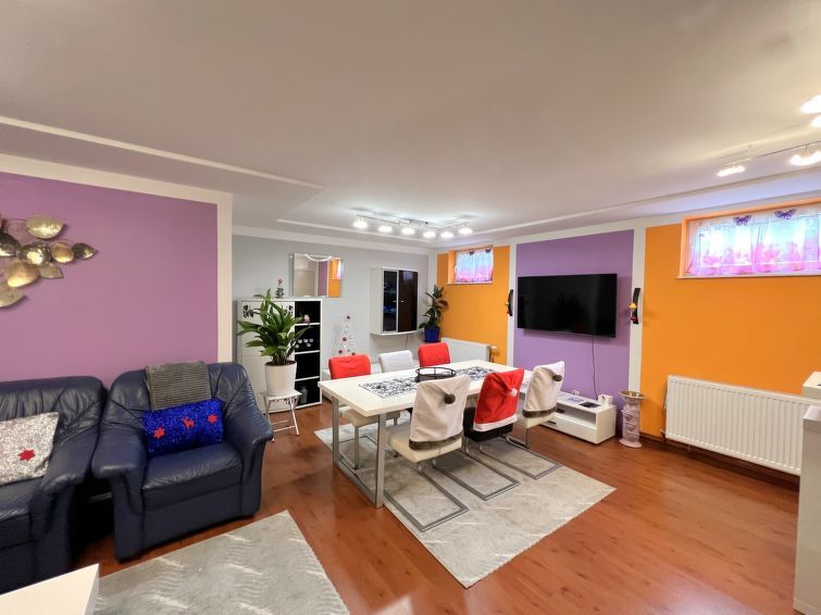 Appartement 3-kamers 100 m2, souterrain. Comfortabel en modern ingericht: hal. Groot woon-/eetkamer met 1 slaapplaats, eettafel, internationale TV-zenders en Flatscreen TV. 1 groot 2-pers. kamer met 1 2-pers bed en 1 slaapplaats. 1 kleine 2-pers. kamer met 1 2-pers bed en 1 uitschuifbaar bed (1 pers. lengte 180 cm), bad/douche. Open keuken (4-pits kookplaat, oven, afwasmachine, broodrooster, waterkoker, magnetron, diepvriezer, elektrische koffiemachine). Aparte WC. Verwarming. Ter beschikking: wasmachine, droger (extra). Internet (Internet (WiFi), gratis). Geschikt voor families. Niet rokers woning. Rookmelders.