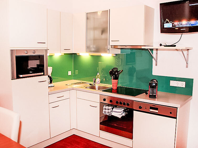 Appartement 4-kamers 75 m2 op 2 verdiepingen, op de bovenverdieping. Het objekt is geschikt voor 4 volwassenen + 2 kinderen. Comfortabel en modern ingericht: 1 2-pers. kamer. 1 2-pers. kamer met Sat-TV. Woon-/eetkamer met Sat-TV en radio. Uitgang naar het balkon. Open keuken (oven, afwasmachine, 4 keramische glas kookplaten, broodrooster, waterkoker, magnetron, elektrische koffiemachine, pads voor de koffiemachine (Nespresso), raclette oven, fondue Set (chinese)) met eettafel, Kabel-TV en Flatscreen TV. Douche/WC. Zolderverdieping: open galerij met 2 bedden. Balkon 14 m2. Balkonmeubilair. Ter beschikking: haardroger. Internet (modem aansluiting). Maximaal 1 huisdier/hond toegestaan. Via de woon-/eetkamer komt men op de galerij, welke is afgeschuind. 50409-000093-2020