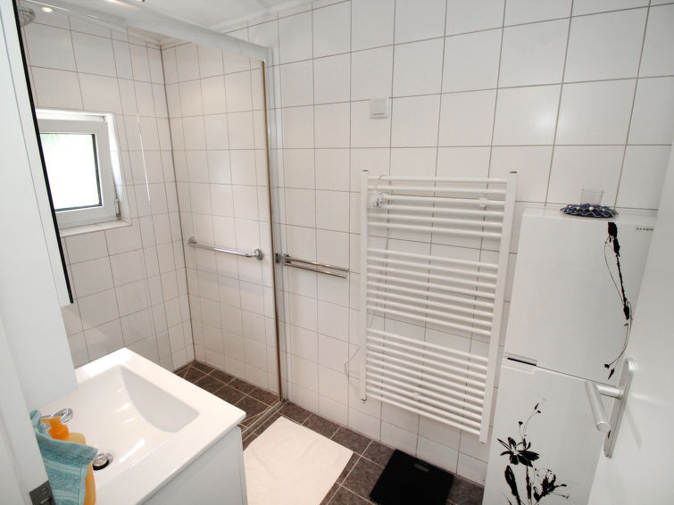 "Bungalow Leopoldau", bungalow 3-kamers 65 m2. Comfortabel ingericht: woon-/eetkamer met eethoek. Uitgang naar de tuin. Woon-/slaapkamer met 1 2-pers divanbed, 1 opklapbed, Kabel-TV en internationale TV-zenders (Flatscreen TV). 1 2-pers. kamer. Keuken (oven, afwasmachine, 4 keramische glas kookplaten, waterkoker, magnetron, elektrische koffiemachine). Bad/douche/WC. Elektrische verwarming. Ter beschikking: kinderbed, haardroger. Internet (WiFi, gratis). Maximaal 3 huisdieren/honden toegestaan. Brandblusser.
