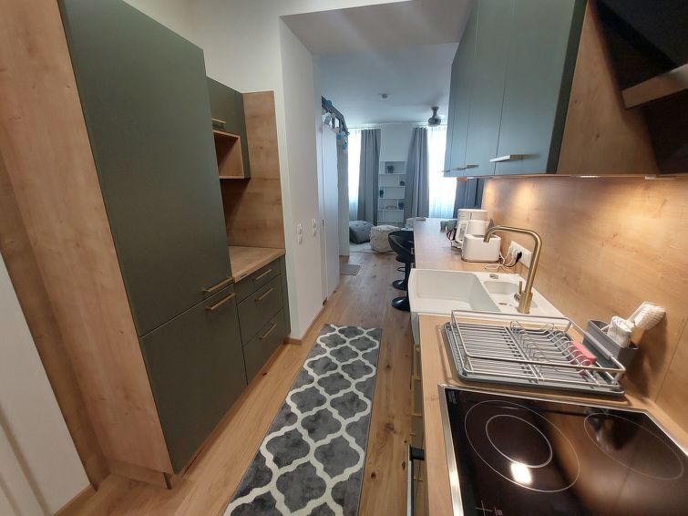 "Premium Apartment MariaHilf 1", appartement 1-kamer 42 m2 op de 2e verdieping. Het objekt is geschikt voor 4 volwassenen. Ruim en licht, volledig gerenoveerd in 2023, zeer comfortabel en modern ingericht: hal. Open woon-/slaapkamer met 1 x 1 stapelbedden (180 cm, lengte 190 cm), 1 uitschuifbaar bed (2 pers.), Kabel-TV, Flatscreen TV, radio, CD-speler en DVD. Open keuken in de hal (4-pits kookplaat, afwasmachine, broodrooster, waterkoker, elektrische koffiemachine). Bad/WC. Verwarming. Houten vloeren. Ter beschikking: wasmachine, strijkijzer, kinderbed. Internet (WiFi, gratis). Niet rokers woning.