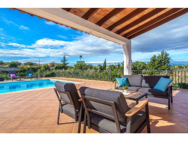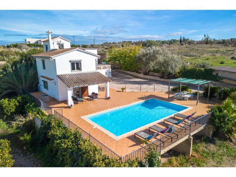 Son Alcaines 6 km van Sineu: Mooi, comfortabele eengezinswoning "Son Alcaines Sineu", omgeven door velden. Buiten de plaats, 6 km van het centrum van Sineu, rustige, zonnige ligging, 2 km van de bosrand, 18 km van zee, 18 km van het strand, te midden van groen, op het noordwesten. Voor alleengebruik: boomgaard (omheind), openluchtzwembad hoekig (5 x 10 m, 100 - 200 cm diepte, seizoensgebonden beschikbaarheid: 01.Mrt. - 31.Okt.) met alarminstallatie. Buitendouche, terras (100 m2), barbecue, onderhoud zwembad door de eigenaar/tuinman. Parkeerplaats op het terrein. Winkel 6 km, levensmiddelenwinkel 6 km, supermarkt 6 km, restaurant 1 km, bar 1 km, bakkerij 6 km, café 6 km, fietsverhuur 18 km, tramhalte "Sineu" 6 km, bushalte "Sineu" 6 km, treinstation "Sineu" 6 km, veerboot "Puerto de Alcudia" 30 km, zandstrand "Playa de Muro" 22 km. Jachthaven 18 km, jachthaven 30 km, golfterrein (18 holes) 40 km, surfschool 22 km, zeilschool 22 km, tennis 18 km, manege 20 km, sportcentrum 18 km, wandelroutes 10 km vanaf het huis, fietspad 5 km. Attracties in de buurt: Rafa Nadal Tennis Academy 10 km, Cuevas del Drach 18 km, Talaiots de Son Fornés 14 km, Museu Etnològic dels Calderers 11 km. Auto noodzakelijk. Geschikt voor families. Het objekt is geschikt voor 4 volwassenen. De eigenaar accepteert geen groepen. De eigenaar accepteert geen jeugdgroepen. Autobaan 14 km van het huis. Spoorweg 6 km van het huis. Vliegveld 35 km van het huis. De omgeving is gevoelig voor geluidsoverlast. Gelieve geen lawaai te maken en de rust te bewaren.