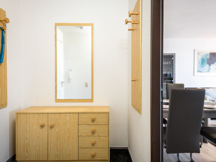 "Waldidylle (A601)", appartement 2-kamers 56 m2 op de 6e verdieping, op het oosten gelegen. Modern en smaakvol ingericht: woon-/eetkamer met 1 2-pers divanbed (160 cm, lengte 200 cm), Sat-TV (Flatscreen TV). Uitgang naar het balkon. 1 kamer met 1 2-pers bed (2 x 90 cm, lengte 200 cm). Kookhoek (oven, afwasmachine, 4 keramische glas kookplaten, broodrooster, waterkoker, magnetron, elektrische koffiemachine). Douche/WC. Balkonmeubilair. Mooi panoramazicht op het landschap. Ter beschikking: strijkijzer. Internet (WiFi, gratis). Niet rokers woning. Maximaal 1 huisdier/hond toegestaan. Rookmelders.