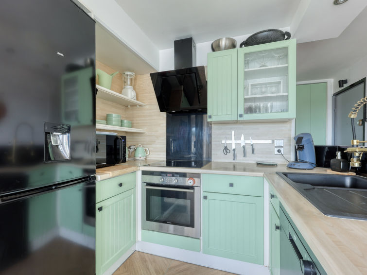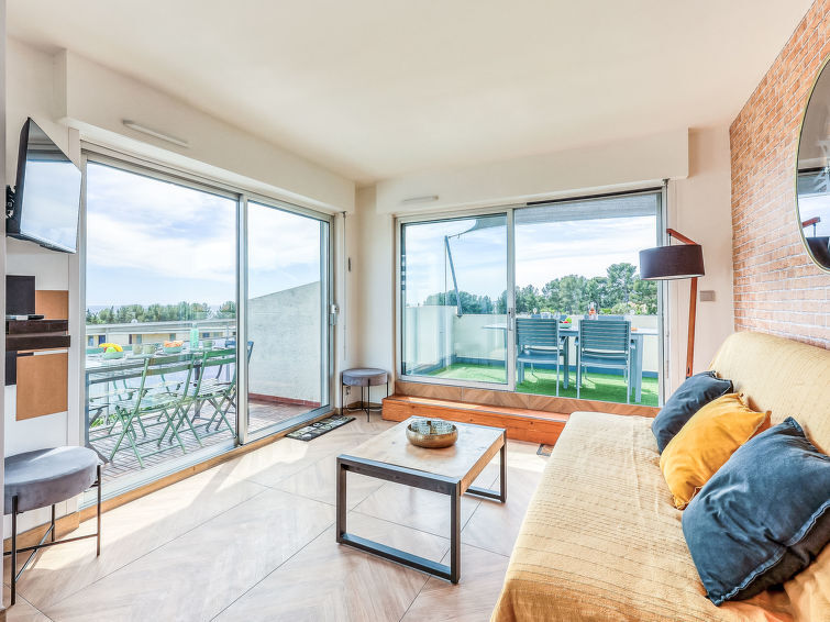 Appartement 2-kamers 55 m2 op de 2e verdieping. Licht, comfortabel en mooi ingericht: woon-/eetkamer met 1 2-pers divanbed (140 cm, lengte 190 cm), TV (Flatscreen TV), air-conditioning. Uitgang naar het terras. 1 kamer met 1 2-pers bed (140 cm, lengte 190 cm), air-conditioning. Open keuken (oven, afwasmachine, 4 inductiekookplaten, broodrooster, waterkoker, magnetron, diepvriezer, elektrische koffiemachine, pads voor de koffiemachine (Senseo) extra). Douche, aparte WC. Heteluchtverwarming. Groot terras 24 m2, 2 terrassen 5 m2. Terrasmeubelen, elektrische barbecue. Uitzicht op zee. Ter beschikking: wasmachine, droger, strijkijzer, kinderbed tot 2 jaar. Internet (WiFi, gratis). Parkeerplaats nr. 701 (1 Auto). Niet rokers woning. TV alleen FR. Rookmelders. Aanbod door een particulier volgens art. 155, IV van CGI. 13028002054CU