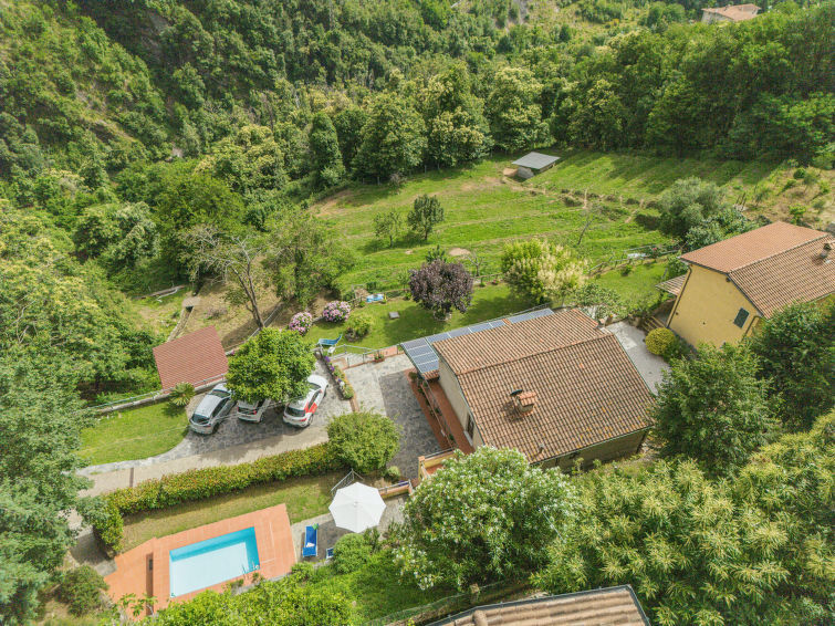 Seravezza: Gezellig, rustieke landhuis "La Grande Aia", van 2 verdiepingen. 2 huizen in de woning. 1 km van het centrum van Seravezza, rustige, zonnige ligging tegen een helling, in een woonwijk, 20 m van de bosrand, 9 km van zee, aan een doodlopende weg, te midden van groen. Voor medegebruik: groot, verzorgde tuin op verschillende niveaus (omheind) met gazon. Voor alleengebruik: tuin 50 m2, openluchtzwembad (verhoogd) omheind (3 x 5 m, 140 cm diepte, seizoensgebonden beschikbaarheid: 28.Mei. - 24.Sep.). Terras, tuinmeubelen, barbecue. In het complex: sauna (extra). Hot tub, wasmachine (voor medegebruik). Wissel van linnengoed (extra wissel te betalen). Wissel van handdoeken (extra wissel te betalen). Steile, smalle toegangsweg tot aan het huis. Parkeerplaats bij het huis op het terrein. Levensmiddelenwinkel 1 km, supermarkt 1 km, restaurant 1 km, bushalte 800 m, zandstrand "Forte dei Marmi" 11 km. Golfterrein (18 holes) 12 km, wandelroutes 30 m vanaf het huis. Attracties in de buurt: Pietrasanta 5 km, Forte dei Marmi 10 km, Lucca 34 km, Pisa 40 km, Viareggio 19 km, Portovenere 68 km. Bekende meren kunnen gemakkelijk worden bereikt: Lago di Massaciuccoli 32 km, Torre del Lago 25 km. Wandelgebied Antro del Corchia Levigliani 15 km, Monte Forato 11 km. Auto noodzakelijk. Object referentie: IT5167.150.1 is gelegen op hetzelfde terrein.