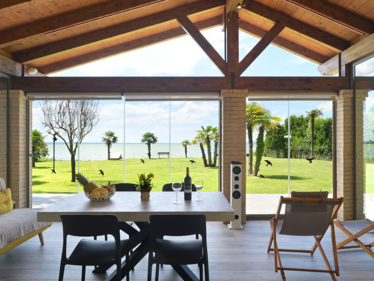 Chalet 5-kamers 110 m2 op 2 verdiepingen. Comfortabel en modern ingericht: woon-/eetkamer met kookhoek en TV (Flatscreen TV). Woonkamer met veranda. Uitgang naar de tuin. 1 kamer met 1 bed, 1 2-pers bed en douche/bidet/WC. 1 2-pers. kamer met douche/bidet/WC. Kookhoek (oven, afwasmachine, broodrooster, waterkoker, magnetron, elektrische koffiemachine, pads voor de koffiemachine (nespresso)). Gas-verwarming, air-conditioning. Verwarming alleen beschikbaar van 08.11. tot 07.04. Bovenverdieping: galerij met TV (Flatscreen TV). Mooi uitzicht op het meer. Ter beschikking: wasmachine, klamboe, haardroger. Internet (Internet (WiFi)). Rookvrij huis. 1 klein huisdier/hond toegestaan. IT054026C202033118