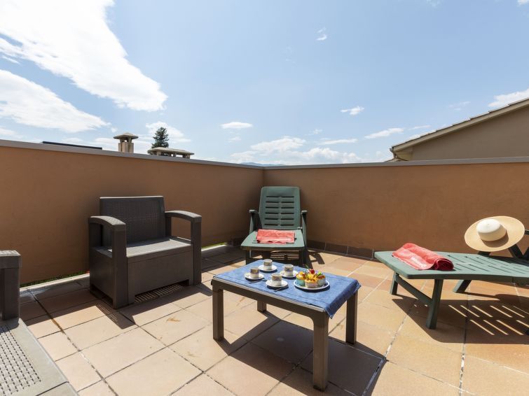 Moderne, mooi eengezinswoning. In de plaats, 1.2 km van het centrum, perfecte locatie: in het centrum en toch rustig gelegen. Voor alleengebruik: tuin met gazon, openluchtzwembad (seizoensgebonden beschikbaarheid: 01.Jan. - 31.Dec. openingstijden zwembad: 06:00-22:00). Patio, tuinmeubelen, barbecue. In het huis: centrale verwarming. Overdekte parkeerplaats. Restaurant 800 m, bakkerij 200 m, bushalte "Estació d'Autobusos" 700 m. De eigenaar accepteert geen jeugdgroepen. De omgeving is gevoelig voor geluidsoverlast. Gelieve geen lawaai te maken en de rust te bewaren.