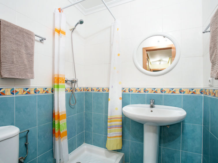 "Luz del Mediterraneo", appartement 3-kamers 60 m2 op de 2e verdieping. Ruim en licht, mooi en smaakvol ingericht: woon-/eetkamer met Sat-TV, Digitale TV, DVD, air-conditioning en heteluchtverwarming. Uitgang naar het terras. 1 kamer met 1 2-pers bed (1 x 150 cm, lengte 190 cm), air-conditioning en heteluchtverwarming. 1 kamer met 2 bedden (90 cm, lengte 190 cm), elektrische kachel. Keuken (oven, 4 keramische glas kookplaten, broodrooster, waterkoker, magnetron, diepvriezer, elektrische koffiemachine). Bad/bidet/WC, douche/WC. Groot terras 25 m2 gedeeltelijk overdekt. Terrasmeubelen, ligstoelen. Mooi uitzicht op de bergen, het zwembad en de tuin. Ter beschikking: wasmachine, droger, strijkijzer, kinderstoel, kinderbed tot 2 jaar, haardroger. Internet (WiFi, gratis). Parkeerplaats nr. 68 (overdekt). Maximaal 1 huisdier/hond toegestaan. AT-423408-A // Reg. Nr.: ESFCTU00000304500052142800000000000000000AT-423408-A1