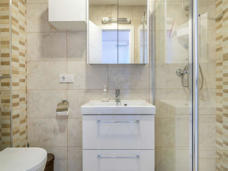 Appartement 3-kamers 55 m2 op de 1e verdieping. Licht, comfortabel ingericht: woon-/eetkamer met eettafel, internationale TV-zenders, Flatscreen TV, air-conditioning en heteluchtverwarming. Uitgang naar het terras. 1 kamer met 1 2-pers bed (150 cm, lengte 190 cm). 1 kamer met 1 bed (90 cm, lengte 190 cm). Open keuken (oven, afwasmachine, 4 keramische glas kookplaten, waterkoker, magnetron, diepvriezer, elektrische koffiemachine). Douche/WC. Elektrische verwarming, heteluchtverwarming. 2 terrassen. Terrasmeubelen. Mooi uitzicht op zee. Ter beschikking: wasmachine, droger, strijkijzer, haardroger. Internet (WiFi, gratis). Parkeerplaats. Geschikt voor families. Niet rokers woning. Privé ingang, rookmelders. VT-467041-A // Reg. Nr.: ESFCTU00000304800048026900000000000000000VT-467041-A1